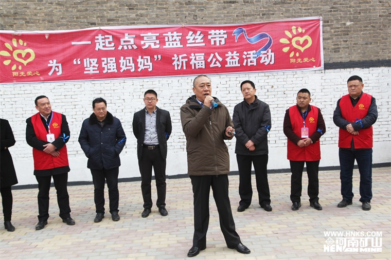 善心留万代,真情永千秋。2016年月12月17日,河南矿山携手阳光爱心志愿者协会、县宣传部、文明办等爱心组织到魏庄镇林参木村举行“一起点亮蓝丝带”公益活动,为“坚强妈妈”王素英老人祈福。