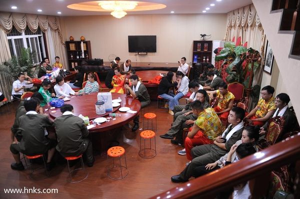 崔书记为了使在忙了这么多天的工友们过一个愉快的中秋,专门安排后勤采购人员,多备食材,在第五场父母筵结束后,又摆了五十多桌,举办我们员工自己的“庆中秋联欢晚会”,所用烟、酒、菜和宴请父母一个标准。联欢会期间,崔书记还为每一位参与的员工发钱,每次400元,从开始到结束发了三次,每人共计1200元。