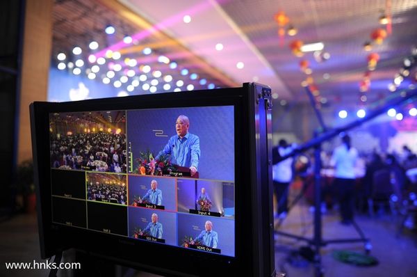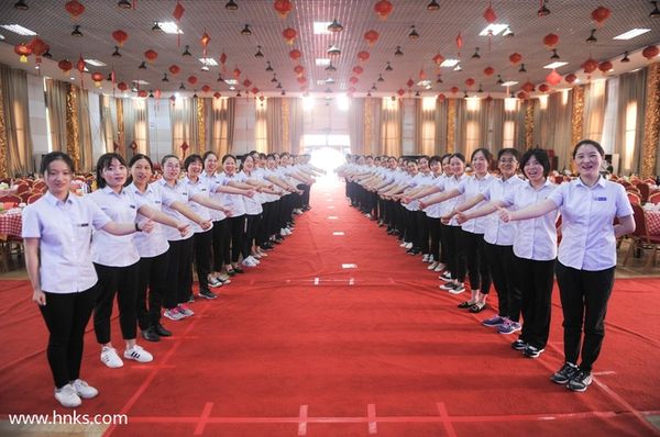 舞台的精彩离不开前期的准备,无论是炫目的灯光、七彩的舞台、震撼的音乐、舞台道具的布置、节目的统筹安排、演员的及时就位、宴会桌的摆排、饭菜的传送,抑或是整个晚会气氛的调动,秩序的维持等都离不开工作人员的群策群力。不管是各部门的管理人员还是班组长,今天都是服务人员。他们忙碌的身影穿梭在台前幕后与宴会桌之间,唯恐父母们吃不好、喝不好、看不好节目。